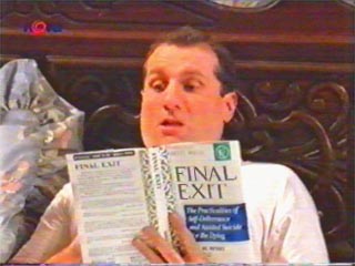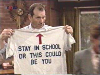 | "Vtip nalezen ve hře Howieho Mandela!" | "Zůstaň ve skole nebo z tebe bude tohle..." |